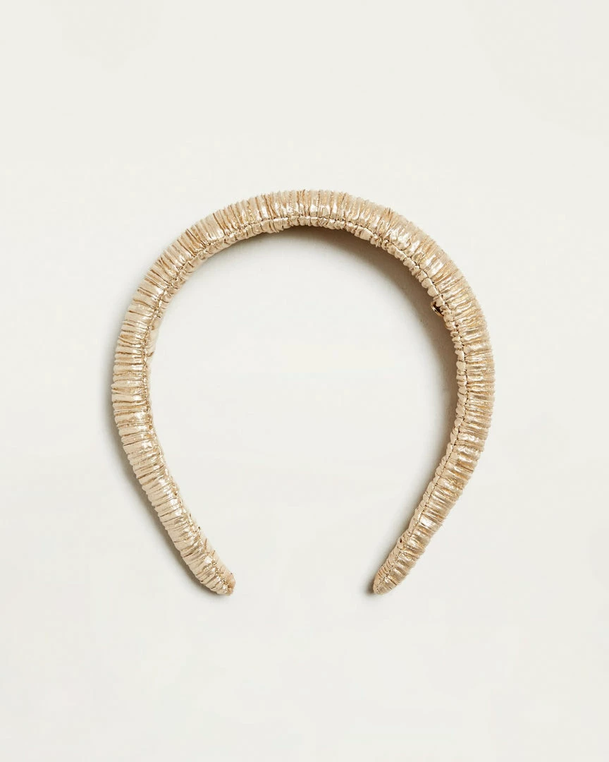 Puffy headband in gold pleated lame` fabric.