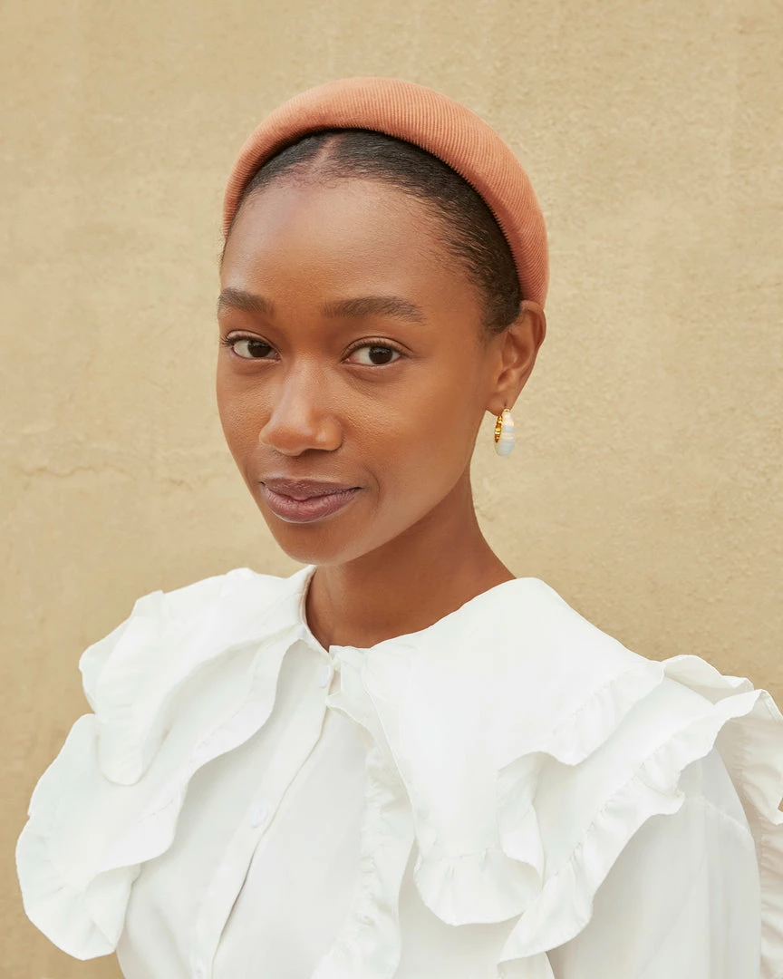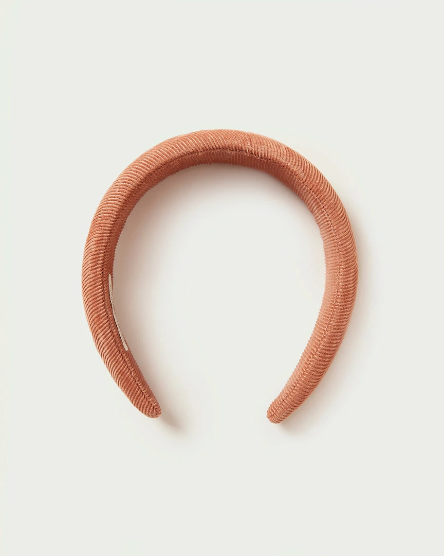 Statement puffy headband in cipria blush-brown Italian corduroy.