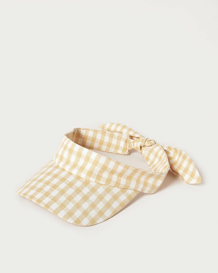 Sun visor in pale yellow and cream gingham canvas fabric.